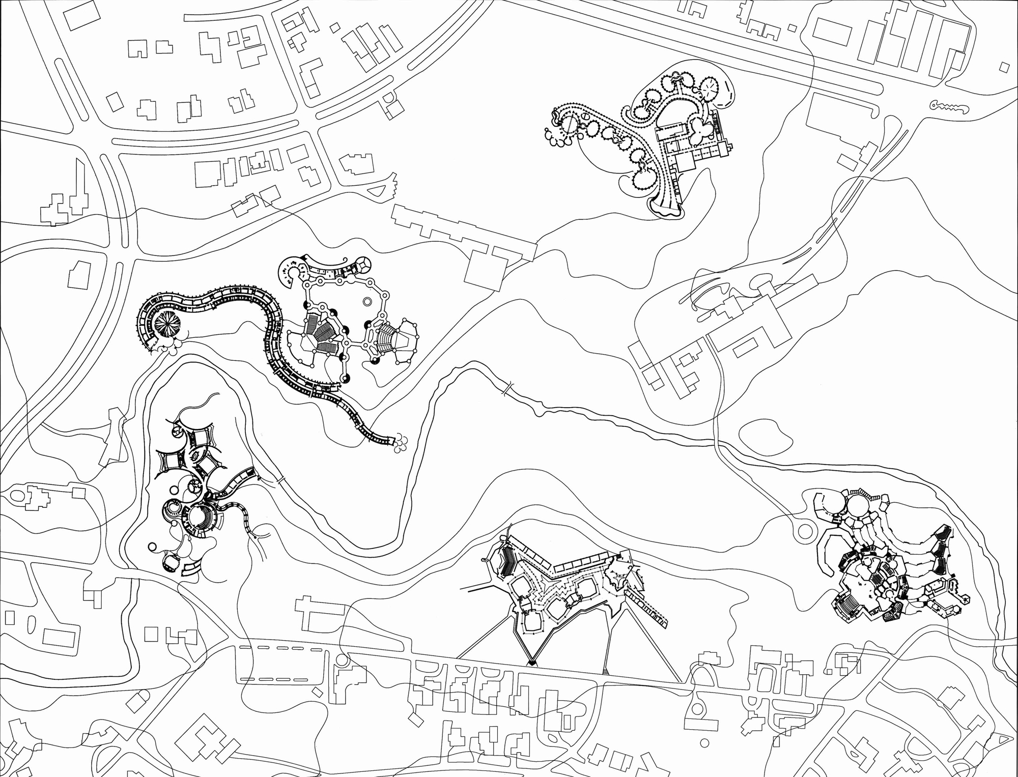 Tổng cộng có năm ngôi trường được xây dựng: múa hiện đại, nghệ thuật tạo hình, nghệ thuật sân khấu, âm nhạc và múa ba lê. Tất cả cùng được chia sẻ một quan điểm về vật liệu và kết cấu, tuy nhiên, mỗi ngôi trường trình bày một cách biến tấu khác nhau của địa hình và phản ánh nội dung công năng cụ thể (specific program) của nó. Trường âm nhạc của Garatti là một cấu trúc uốn khúc 330 mét, chạy theo đường viền của dòng sông, và được bổ sung bằng các vòm thấp và hai phòng hòa nhạc và thực hành lớn. Một thiết kế khác của Garatti là trường Ballet, trong đó bao gồm một cụm các không gian vòm, bao bọc gạch đất nung, nối giữa các không gian là những con đường cuộn vào nhau trong bên trong khu tổ hợp.