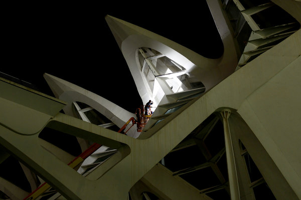 Còn tại Valencia, việc bạo tay chi tiêu của chính quyền khu vực và tác phẩm của Calatrava đang thường xuyên bị mổ xẻ và miệt thị, cũng như các chính trị gia địa phương đấu tranh xem ai là người phải chịu trách nhiệm về món nợ khổng lồ của dự án. Các quan chức khu vực đã hy vọng rằng khu phức hợp sẽ làm biến đổi thành phố này trở thành một địa điểm du lịch, như cách mà Bảo tàng Guggenheim ở Bilbao của Frank Gehry đã đưa thành phố này trên bản đồ, và họ tiếp tục bảo vệ khoản đầu tư. Nhưng có vẻ như họ đã phải xác định một giới hạn vào năm ngoái, khi làn da mịn màng của nhà hát opera do Calatrava thiết kế – một số người gọi đó là mũ bảo hiểm của Darth Vader (1)- đã bắt đầu gây chú ý với những vết rạn nứt chỉ sáu năm sau khi công trình mở cửa.