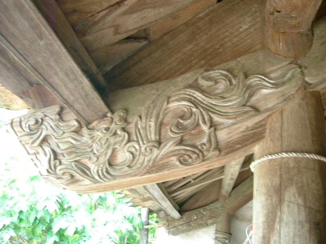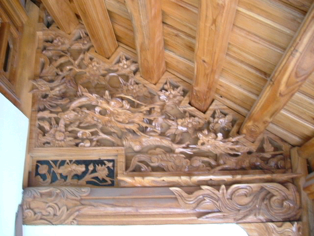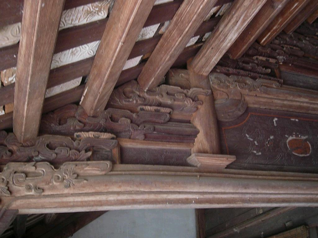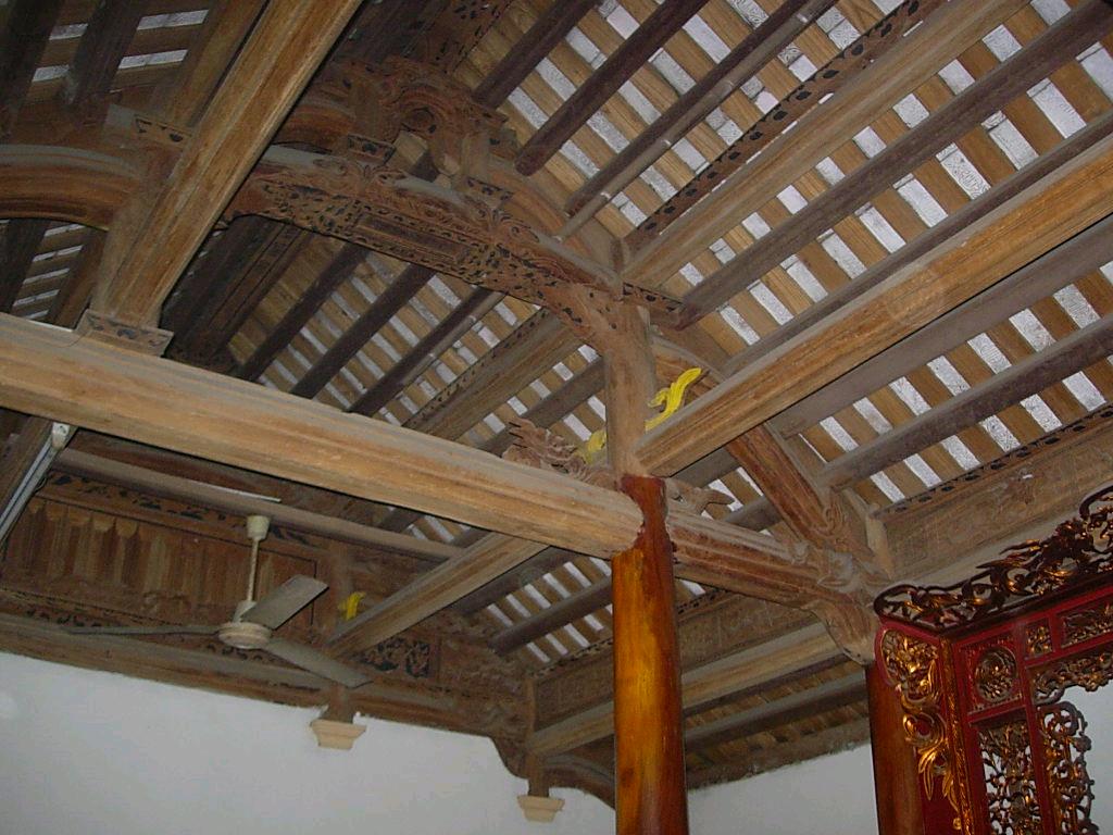 Hệ kết cấu mái gồm: hoành, riu, mè đều bằng gỗ. Mái lợp hai lớp, lớp dưới là ngói liệt, lớp trên là ngói mũi.
