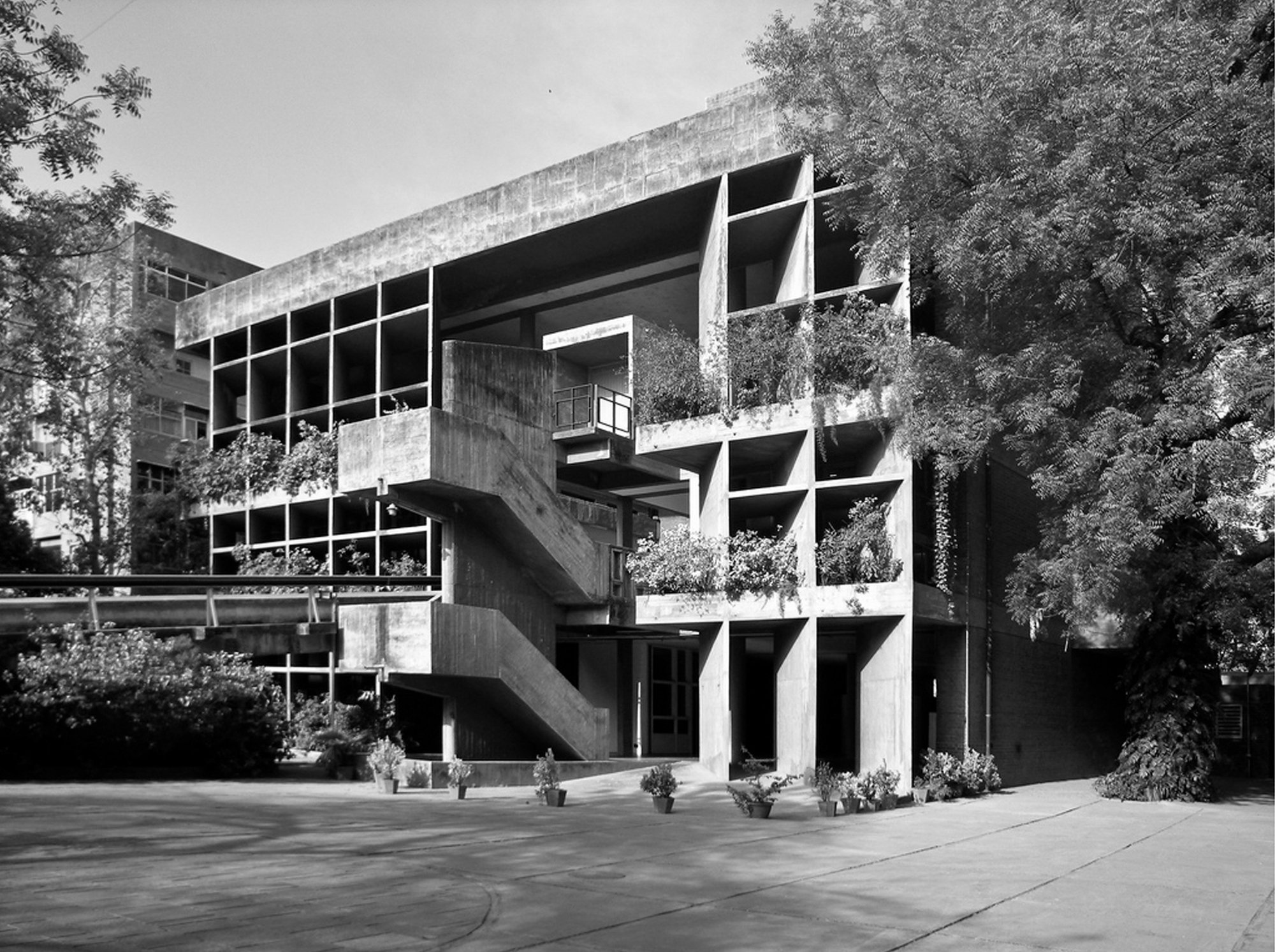 “Bối cảnh của công trình trong một khu vườn, chế ngự hoàn toàn khung cảnh bờ sông đẹp như tranh vẽ với những người thợ dệt đang nhuộm, phơi vải bông trên triền cát của bờ sông, cùng với bò, trâu và khỉ dầm mình trong làn nước để giải nhiệt. Một bức tranh tổng thể như một lời mời gọi…để định hình khung nhìn từ mỗi tầng nhà của công trình.” Le Corbusier