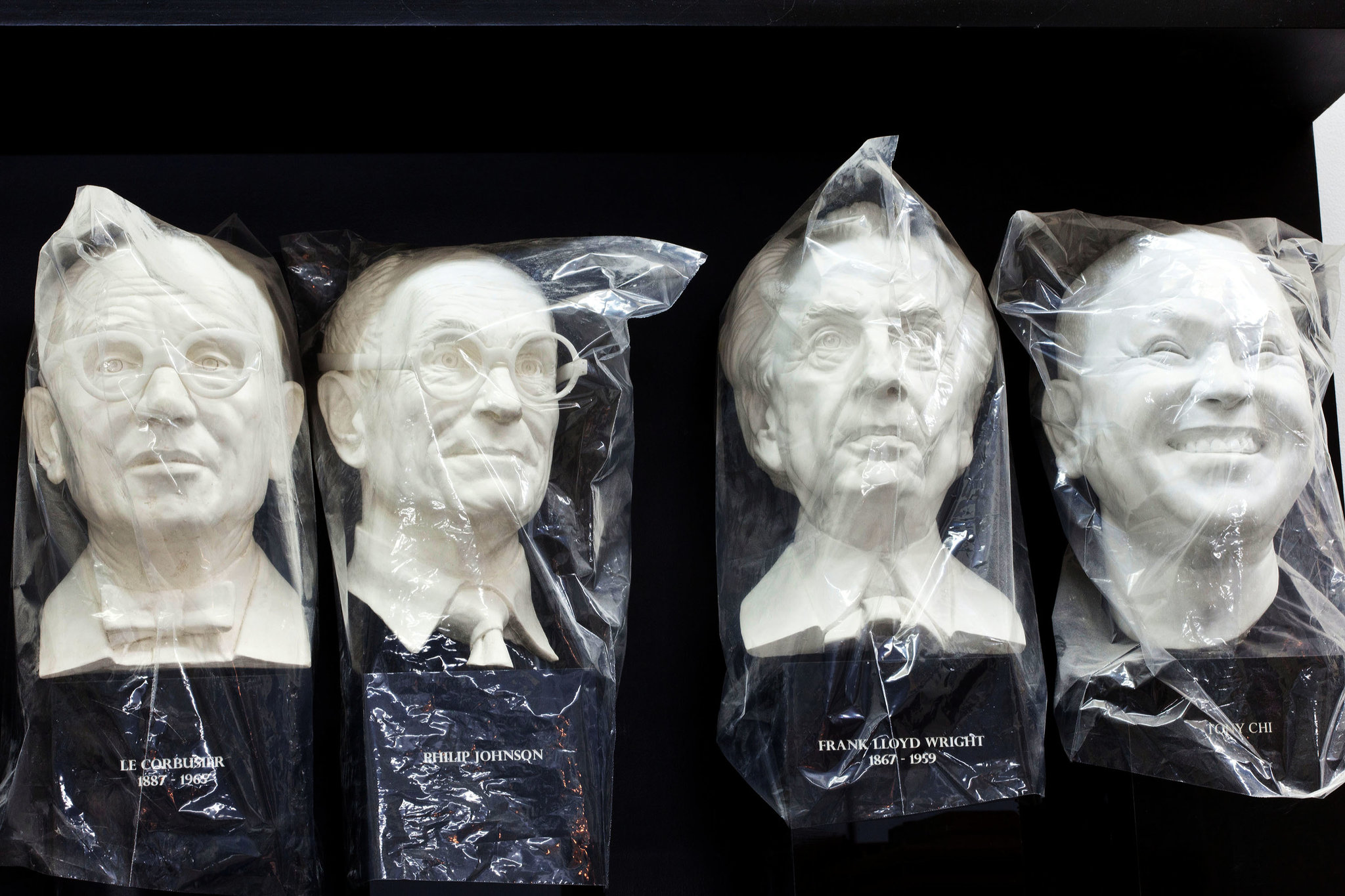 Sử dụng khả năng của mình để chuyển hóa cái nhìn của một kiến trúc sư là một chìa khóa cho uy tín của ông Tenguerian, và các bức tường ở studio của ông chính là một bài ca cho sự thành công rực rõ. Các bức ảnh, được đóng đinh treo lên gần như tất cả các bề mặt có sẵn, bao gồm ông Johnson với cái kính tròn đen mang thương hiệu của mình ôm con trai của ông Tenguerian, mô hình cho cầu mới Tappan Zee và một mô hình lạ hình chữ nhật của một khách sạn được đề xuất ở Abu Dhabi. Trên một bức tường, một số giá là tượng bán thân bằng đất sét của các kiến trúc sư nổi tiếng, tác phẩm từ anh trai của ông Tenguerian Harout, một nhà điêu khắc, người đã tạo ra chân dung từ những bức ảnh chụp khi các kiến trúc sư đã đến thăm xưởng làm việc.