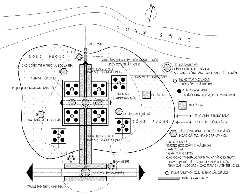 – Môi trường ở: Quy hoạch không gian làng – xã đang còn bỏ ngỏ. Giai đoạn này nhiều công trình như: sân – nhà kho, nhà ủ phân, kho thuốc bảo vệ thực vật, trạm giống, … như thời HTX không còn nữa, thay vào đó là các công trình như: văn hóa, thể thao, bưu điện, …Hạ tầng kỹ thuật đã thay đổi, xuất hiện các trục đường điện, điện thoại, truyền hình, các trạm thu phát sóng chuyển tiếp của các đơn vị viễn thông,…Giao thông được cứng hóa bằng bê tông nhưng không mở rộng được nhiều vì phần lớn là ngõ xóm cũ. Nhà ở rất đa dạng, mang phong cách kiến trúc pha tạp từ đô thị, các không gian khuôn viên cây xanh bị co hẹp do quỹ đất ít dần. Yếu tố vi khí hậu như ánh sáng, hướng gió bị hạn chế. Công năng chạy theo thị hiếu và cơ cấu sản xuất thay đổi nhưng không theo kịp vì không có thiết kế bài bản, … và vì trình độ văn hóa thẩm mỹ còn thấp