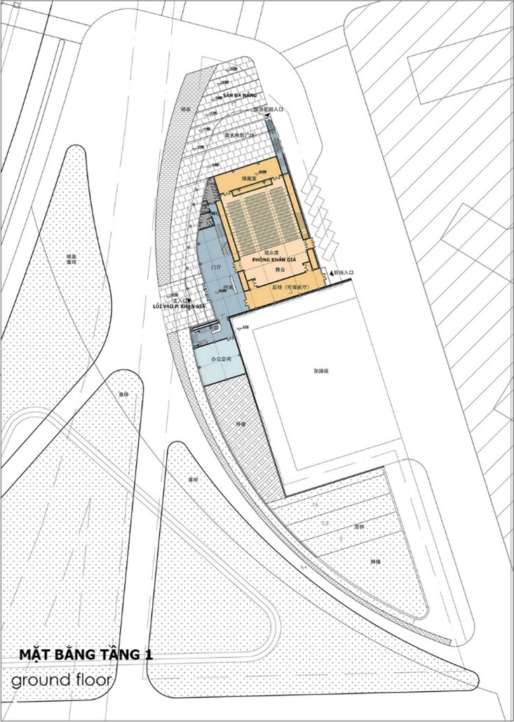 Dự án tọa lạc tại quận Từ Hối, tại ngã ba của 3 trục giao thông chính với tàu điện ngầm và cũng nằm ngay gần một trạm xăng. Điều này dẫn đến một số ràng buộc đặc biệt liên quan đến việc xử lý cảnh quan, lưu thông và các điểm tiếp cận. Các đường nét mềm mại của tòa nhà tương phản với sức căng được tạo ra bởi các trục cơ sở hạ tầng chính bao quanh khu vực. Đây là một giải pháp xử lý rất hay nhằm hạn chế bớt nhược điểm của khu đất. Một không gian cộng đồng mới có được bằng cách tạo ra một sân để hoạt động đa năng , sử dụng các công nghệ mới và mặt tiền tương tác, mở rộng các mảng xanh nhiều nhất có thể và thiết kế cảnh quan sáng tạo.