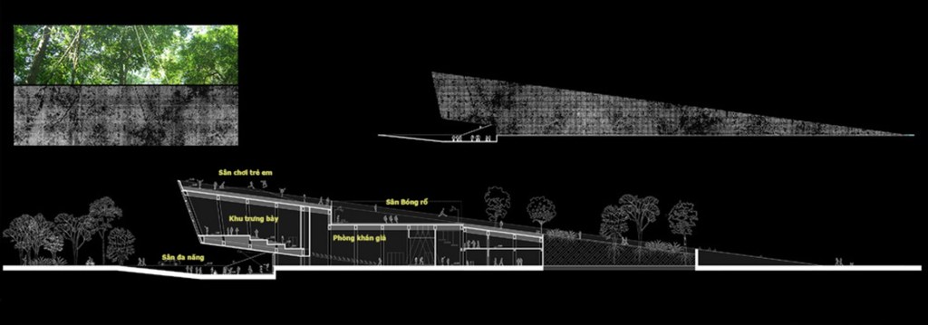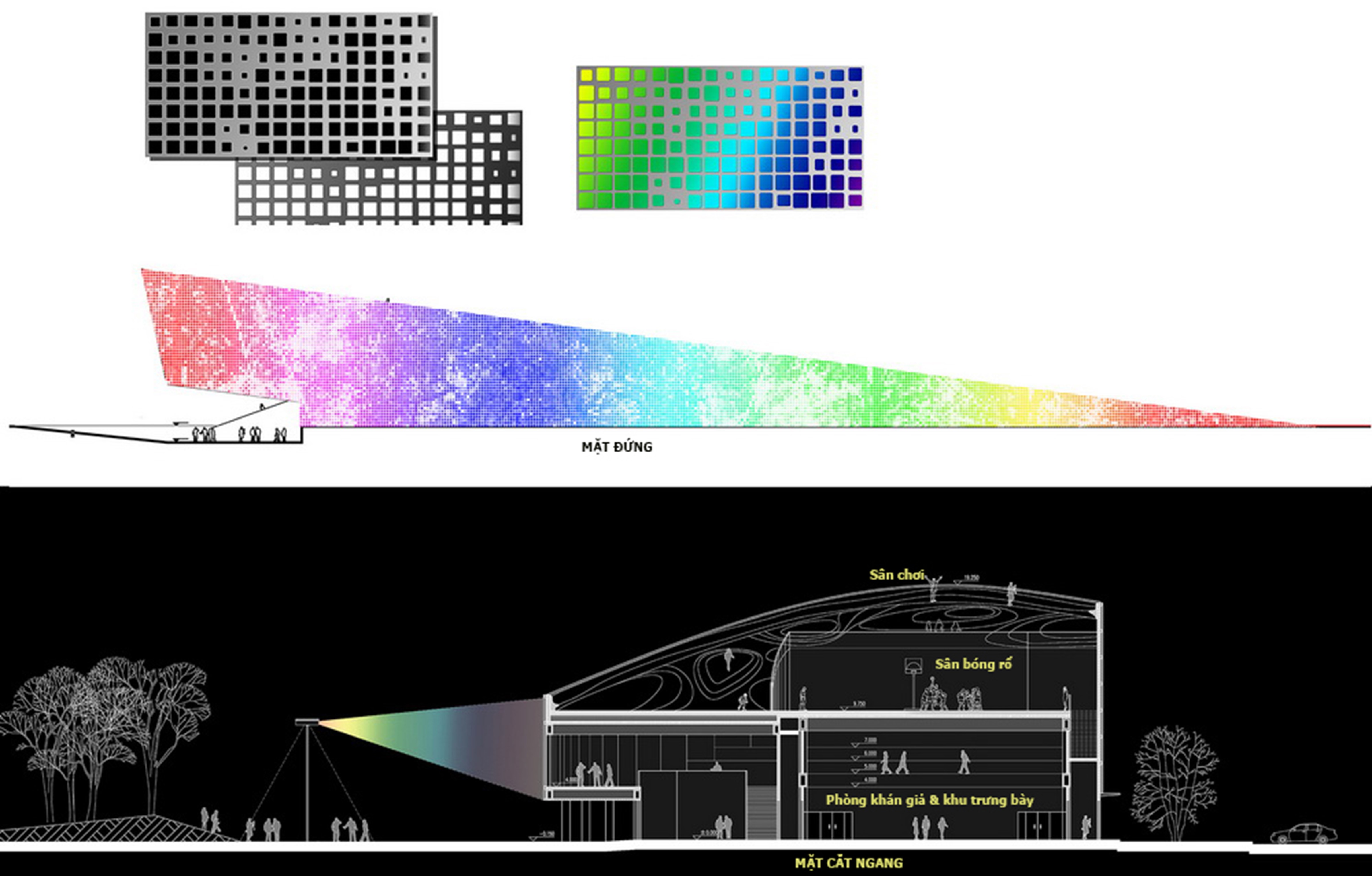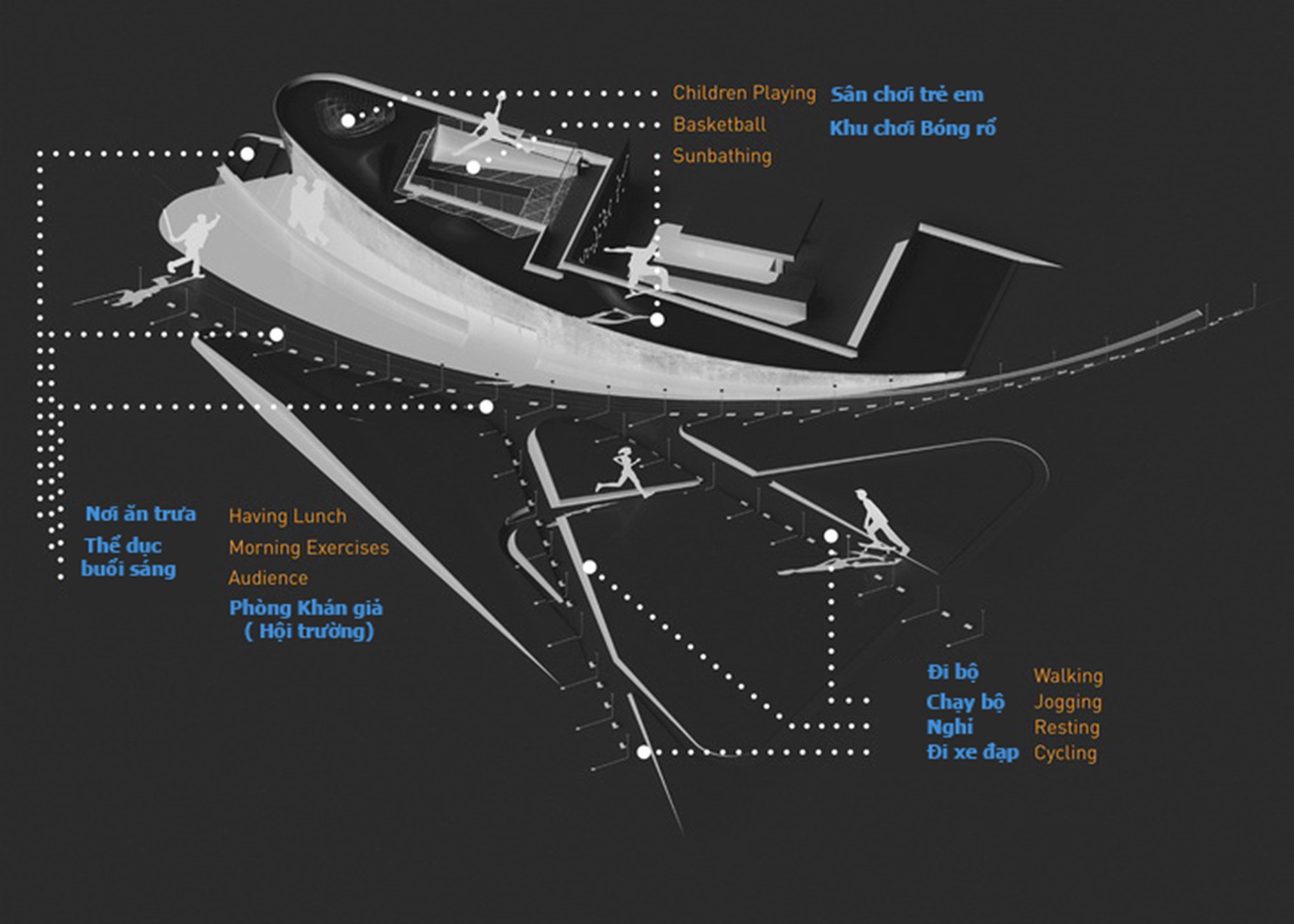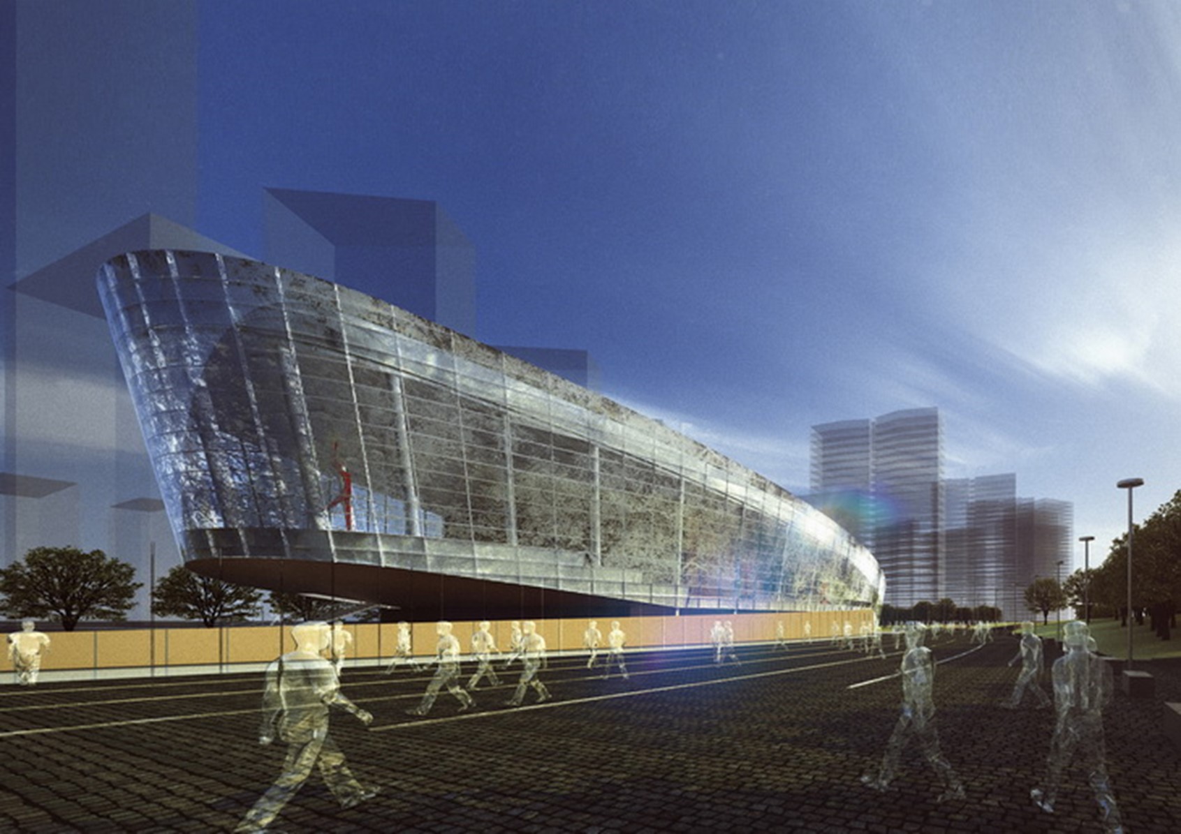 Mục đích thiết kế là tạo ra một điểm nhấn cho khu vực với cảm giác công nghệ cao và đồng thời là trung tâm cho các hoạt động và sự kiện công cộng đa dạng. Vị trí này theo ý tưởng của người thiết kế nên là lá phổi xanh của khu vực, được bao quanh bởi các tuyến đường trên cao và các tòa nhà cao tầng. Vì vậy giải pháp được đưa ra là toàn bộ phần mái công trình được bố trí như một sân dốc, bên trên trồng cây và tổ chức các sân chơi. Từ trên không nhìn xuống, công trình kiến trúc ẩn mình hoàn toàn trong công viên cây xanh và như trở thành một với đất.
