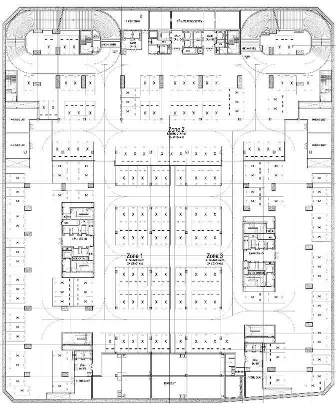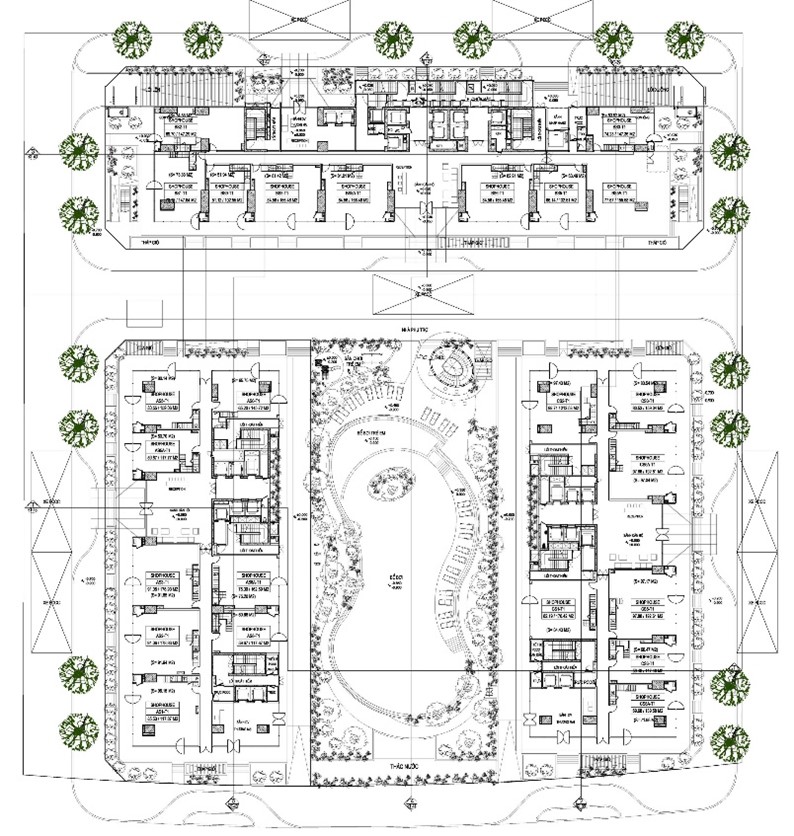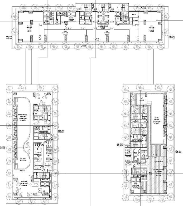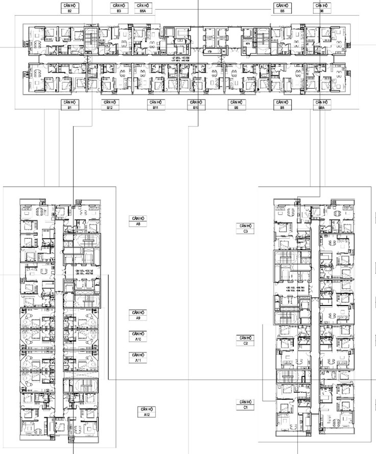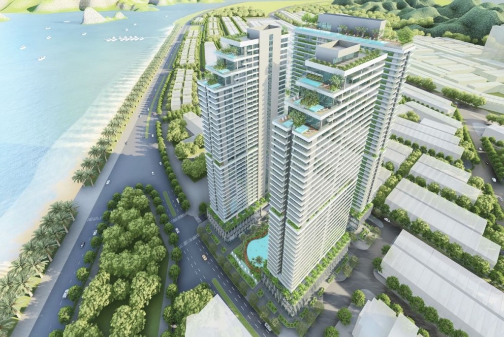 Dự án nhà ở, căn hộ khách sạn Condotel Hạ Long : sử dụng dầm chuyển để điều chỉnh tiết diện cột vách phù hợp với các không gian chức năng gara ô tô, dịch vụ công cộng và căn hộ tại các tầng hầm, tầng đế và khối tháp. Thiết kế : KTS. Nguyễn Toàn Thắng.
