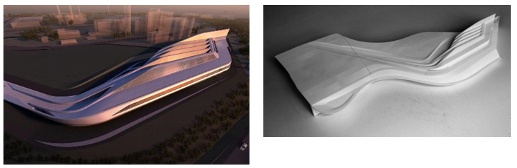 Ý tưởng hình thành nên một khối cấu trúc uốn lượn và nổi bật, chứa tất cả các không gian chức năng. Hình thức của nó thoai thoải gợi hình ảnh núi non hay cồn cát. Kiến trúc nổi lên khỏi mặt đất, vừa là một phần của cảnh quan nhưng cũng là một yếu tố điểm nhấn trên đường chân trời. Kết hợp với công trình, không gian xung quanh hình thành các không gian công viên mở cũng như các chức năng phụ trợ như bãi đỗ xe và nhà ga, bên dưới lòng đất hoặc tích hợp vào hình thức công trình và cảnh quan.