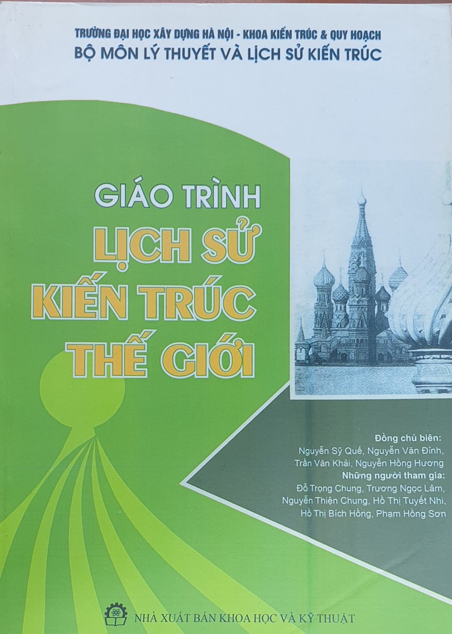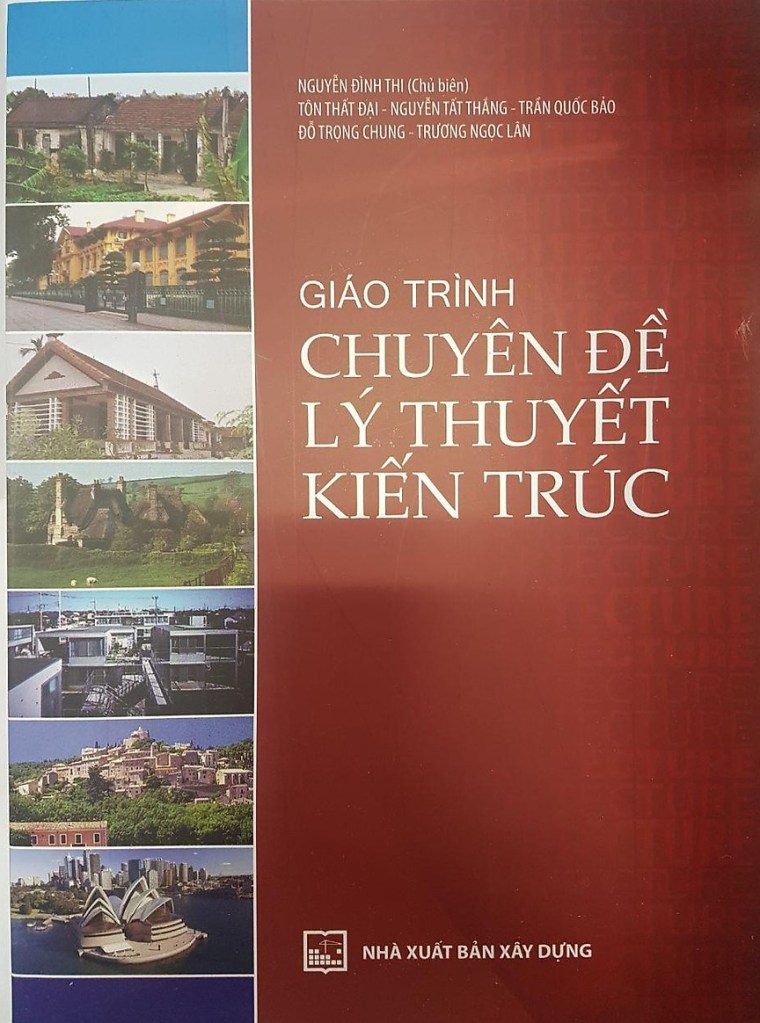 Đỗ Trọng Hưng. Cơ sở tạo hình. Hà Nội, NXB Mỹ thuật, 2015.Nguyễn Đình Thi. Giáo trình vẽ ghi kiến trúc. Hà Nội, NXB Xây dựng, 2018.Nguyễn Đình Thi, Nguyễn Tất Thắng. Giáo trình Văn hóa Kiến trúc. Hà Nội, NXB Xây dựng, 2022.Nguyễn Đình Thi (chủ biên). Giáo trình Lịch sử kiến trúc. Hà Nội, NXB Xây dựng, 2020.Bộ môn Lý thuyết và lịch sử kiến trúc, Trường Đại học Xây dựng Hà nội. Giáo trình Lịch sử kiến trúc thế giới. Hà Nội, NXB KH&KT, 2011.Đặng Thái Hoàng. Sáng tác kiến trúc. Hà Nội, NXB Xây dựng, 2011.Nguyễn Đình Thi. Giáo trình chuyên đề lý thuyết kiến trúc. Hà Nội, NXB Xây dựng, 2017.Nguyễn Bá Minh, Nguyễn Sỹ Quế (đồng chủ biên). Giáo Trình Cơ Sở Kiến Trúc. Hà Nội, NXB Xây dựng, 2013.Bộ môn Lý thuyết và lịch sử kiến trúc, Trường Đại học Xây dựng Hà nội. Giáo Trình Lịch Sử Nghệ Thuật Tập 2. Hà Nội, NXB Xây dựng, 2017.Bộ môn Lý thuyết và lịch sử kiến trúc, Trường Đại học Xây dựng Hà nội. Giáo Trình Lịch Sử Nghệ Thuật Tập 1. Hà Nội, NXB Xây dựng, 2015.Bộ môn Lý thuyết và lịch sử kiến trúc, Trường Đại học Xây dựng Hà nội. Giáo trình Lịch sử kiến trúc thế giới tập 2. Hà Nội, NXB Xây dựng, 2013.Bộ môn Lý thuyết và lịch sử kiến trúc, Trường Đại học Xây dựng Hà nội. Giáo trình Lịch sử kiến trúc thế giới tập 1. Hà Nội, NXB Xây dựng, 2009.